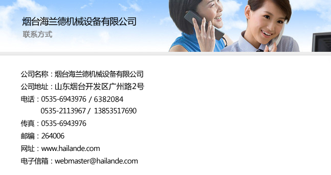 所有版權:煙臺海蘭德機械設備有限公司 地址:山東省煙臺市開(kāi)發(fā)區廣州路2號 電話(huà):0535-6382084 傳真:0535-6943976